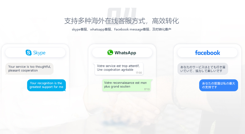 支持多種海外在線客服方式,高效轉(zhuǎn)化
